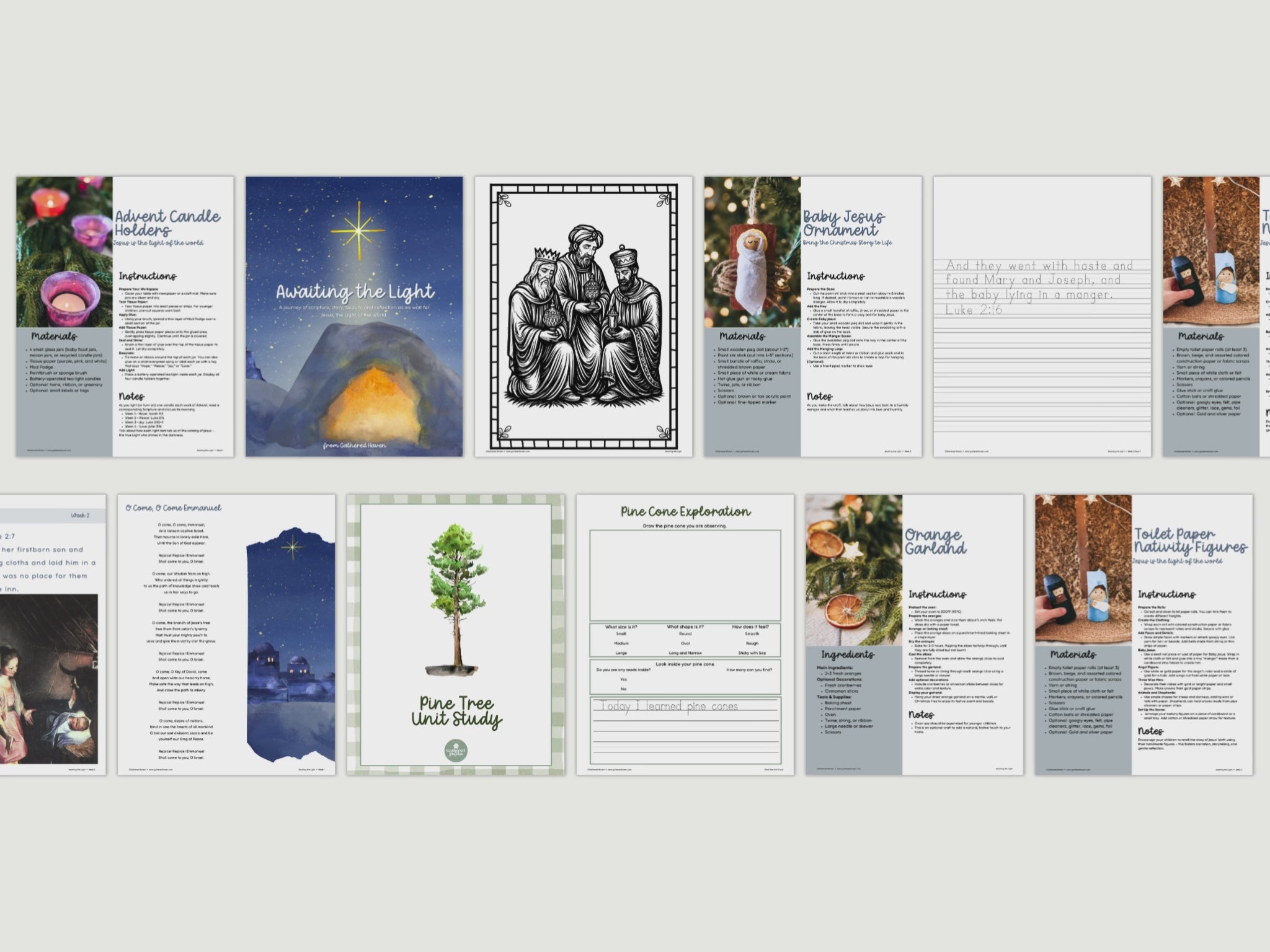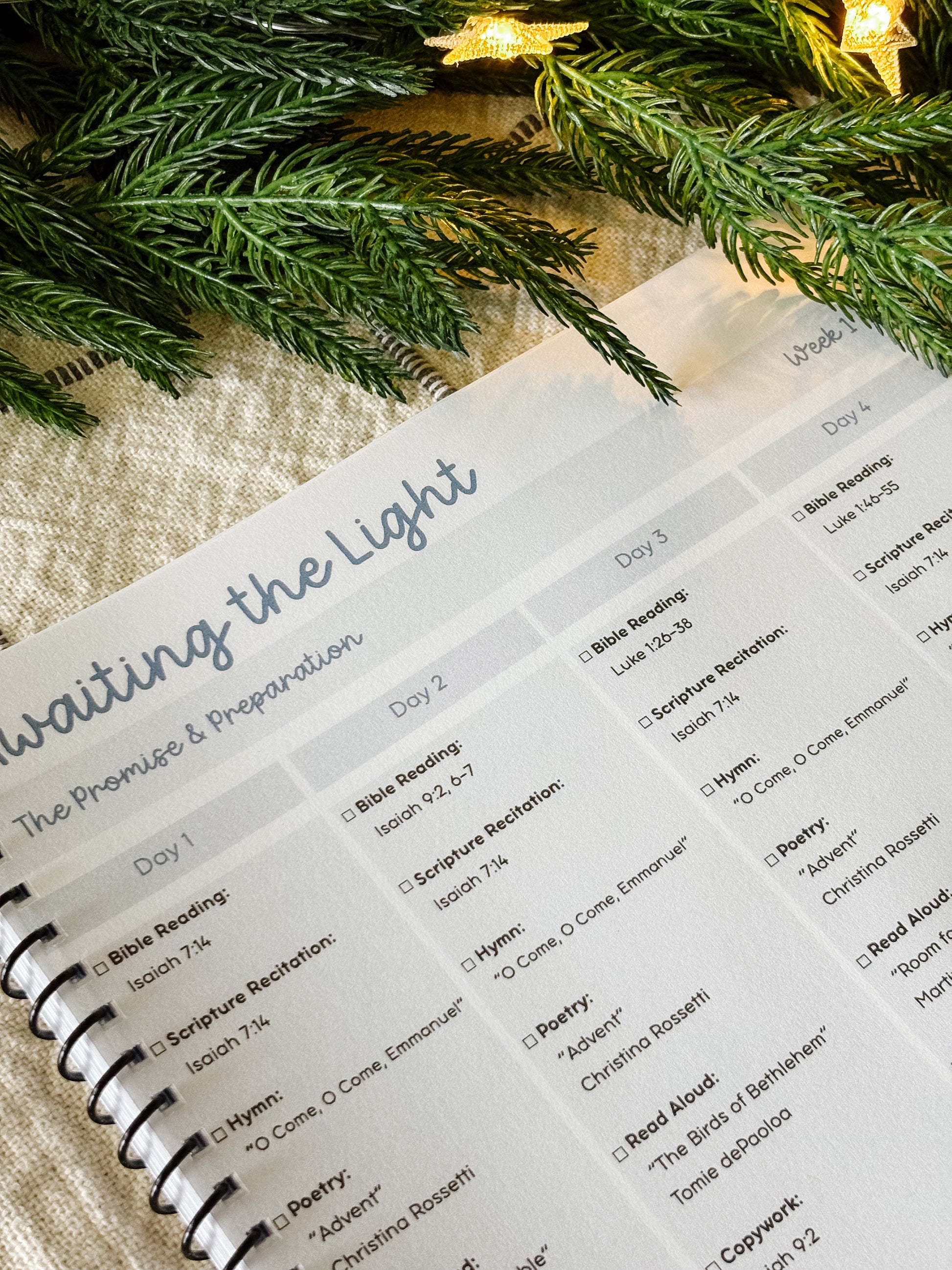 Awaiting the Light is a beautifully designed Advent study created to help your family slow down, prepare your hearts, and rediscover the wonder of Christ’s coming. Thoughtfully crafted for busy homes, this guide provides a peaceful rhythm for December—simple enough to follow through, rich enough to make an impact, and flexible enough for all ages.